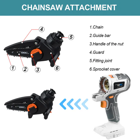 This product is widely used for screwing and drilling. By connecting different attachments. it can perform a variety of tasks such as cutting. sanding. and oscillating. For example. the oscillating tool attachment can cut materials such as drywall. metal. and wood. while the reciprocating saw attachment makes it easy to change blades and can cut materials such as wood and metal. The sanding attachment is ideal for detailed sanding of furniture such as chairs. coffee tables. and chest of drawers.